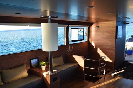 The La Vignia Boat is the ultimate choice for families and groups of friends seeking an unforgettable adventure at sea. This spacious 23-meter-long, 5-meter-wide vessel comfortably accommodates up to 30 guests, making it ideal for larger gatherings. Guests can enjoy a range of activities, including snorkeling, fishing, and island charters, in some of the most beautiful spots. With three twin cabins and a suite (accommodating up to 10 guests total), all equipped with air conditioning, along with bathrooms on both decks and dive deck showers, comfort is guaranteed. The La Vignia also features inviting common areas, such as an indoor salon with panoramic views, an outdoor dining area, a sundeck with bean bags and sunbeds, an outdoor bar with an ice maker, a 40” Samsung smart TV, and a Bluetooth sound system for entertainment. For added convenience, it’s powered by eco-friendly solar panels, a Scania marine 450 hp diesel engine, two diesel electric generators, four large freshwater tanks, and a Zodiac Yacht line with a 40 hp Mercury outboard engine for additional excursions. With La Vignia Boat, experience an adventure that perfectly balances comfort, excitement, and the serenity of the open sea.